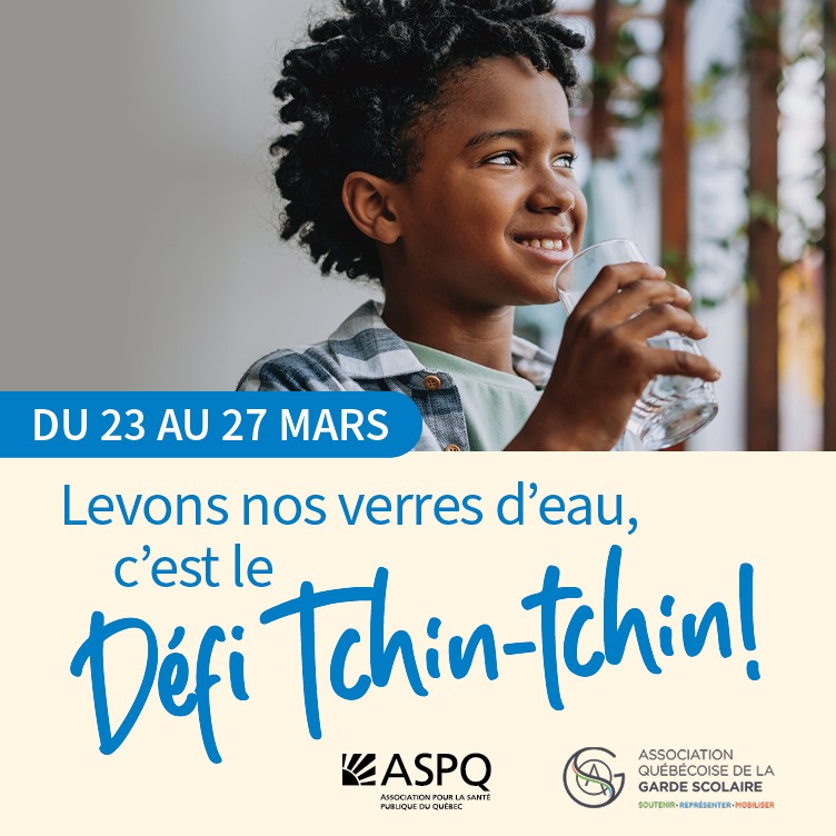 Félicitations aux 431 écoles et aux 97 030 élèves qui ont relevé le Défi Tchin-Tchin en mars 2025 ! Grâce à l’engagement de près de 6 190 membres du personnel scolaire, ces élèves ont eu des modèles inspirants pour adopter de saines habitudes d’hydratation au quotidien.